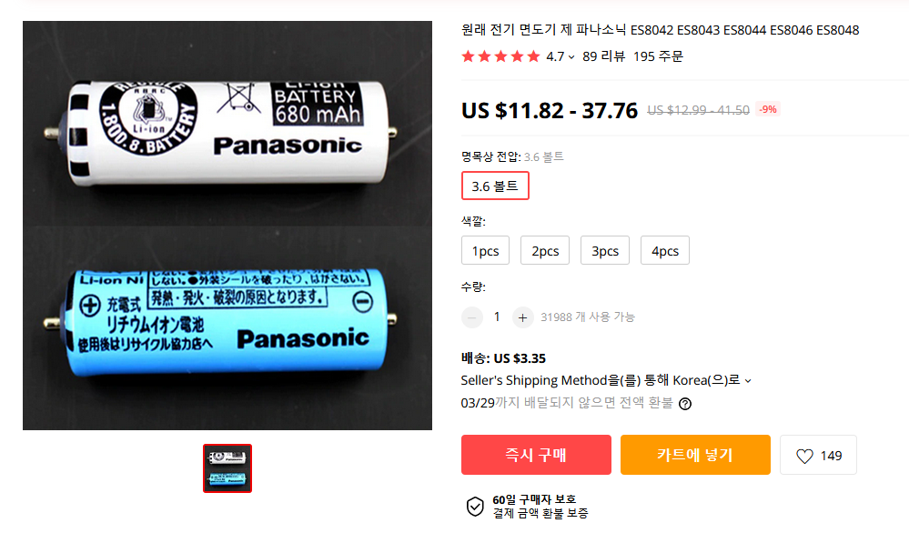 하지만 문제는 배터리를 어디서 구하느냐 인데, 세상 만물이 모여있다는 알리에서 검색을 해보니 뭐 바로 나온다.