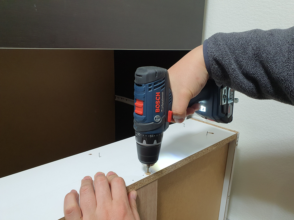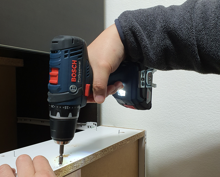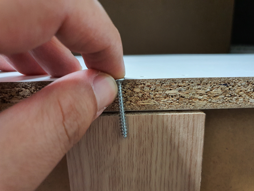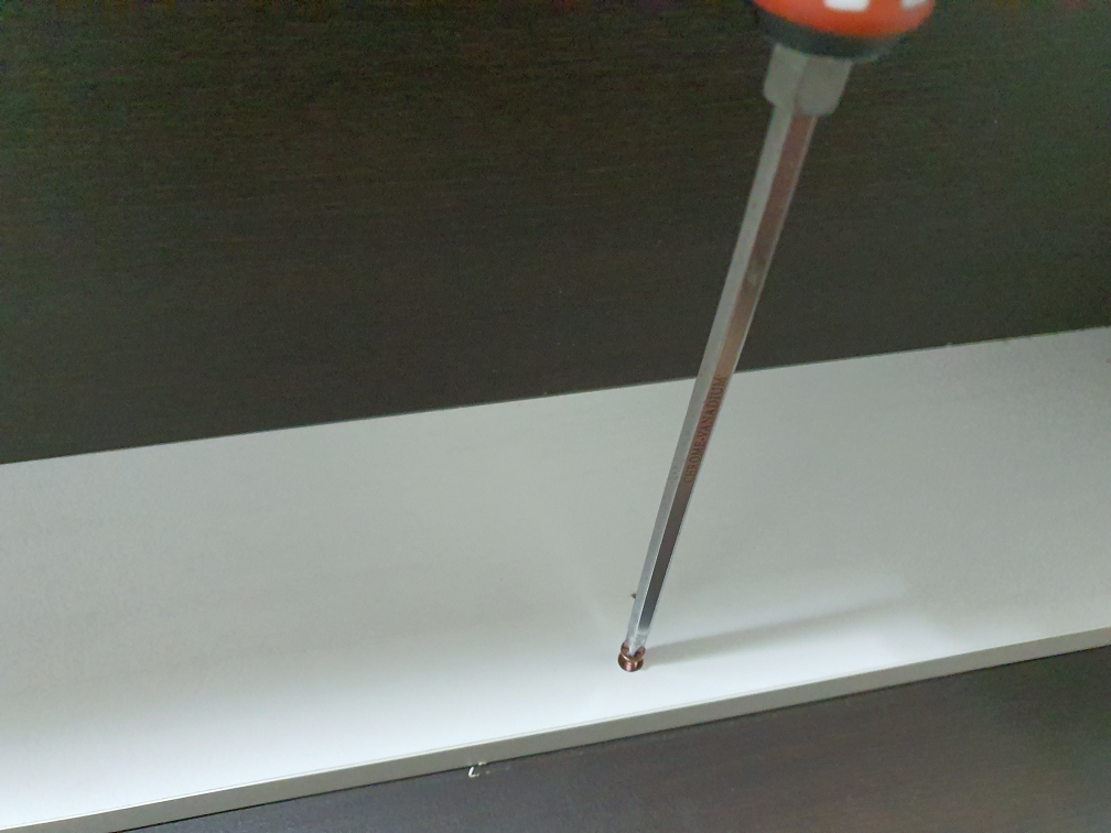 드릴로 드드득하고 조였다가는 구멍에 제대로 맞추지 못하고 조이게 되면 구멍만 헐거워지니 일단 자 손으로 맞춰서 넣어두고, 아래와 같이 드라이버로 살살 조여줬다.