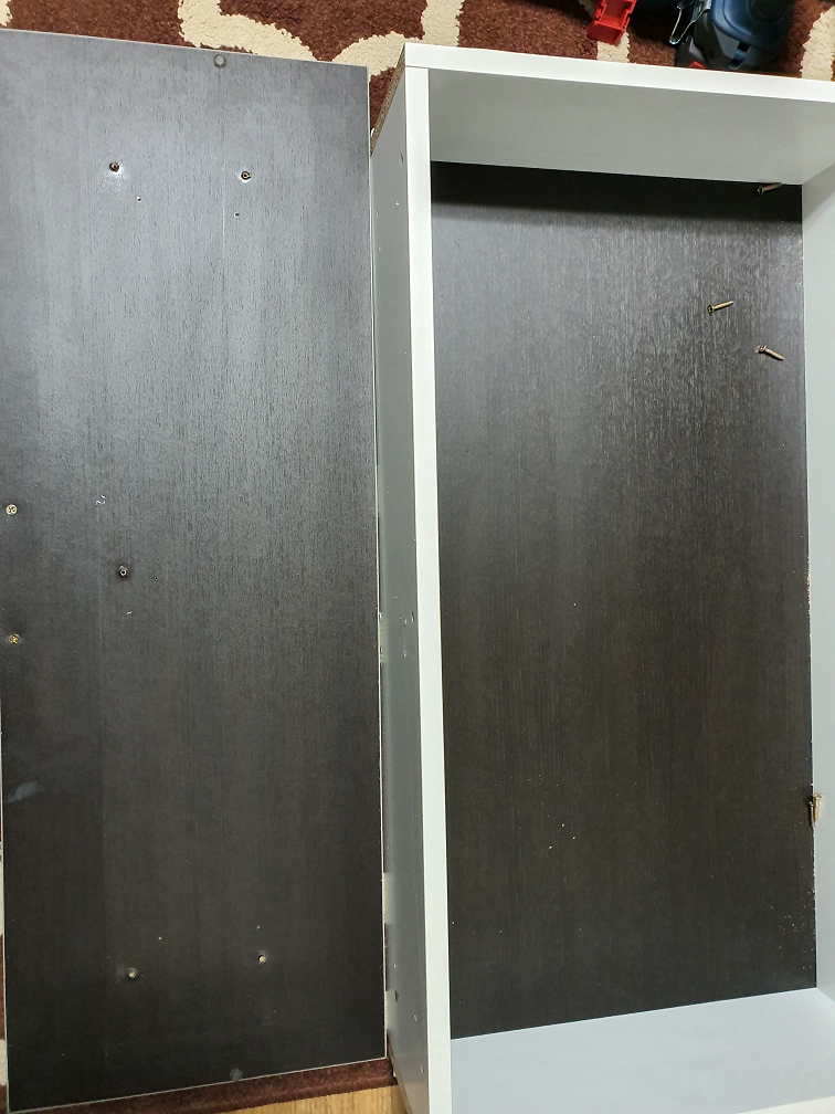 마감용 앞판을 타카핀과 나사로 해뒀는데, 따로 구멍을 더 내지 않고 헐겁지 않게 하기 위해서는 그 자리에 그대로 고정해주는것이 좋을것 같아서, 타카핀은 제거하고 잘 구멍을 맞춰서 이때는 드라이버로 살살 조여줬다.