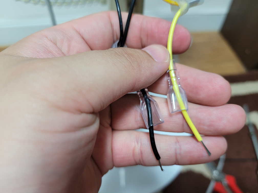 터미널 압착기가 없어도 뭐 이정도는 압착할수 있을것 같아서 압착기를 따로 구입하지는 않았는데, 생각보다 압착이 좀 신경쓰이고 힘이 들었다. 전선 한개는 내가 했는데, 볼품이 너무 없이 이쁘지 않게 되어서 그냥 대충 넣어뒀고, 나머지 한선은 아들이 해봤는데 이쁘게 잘 되었다.