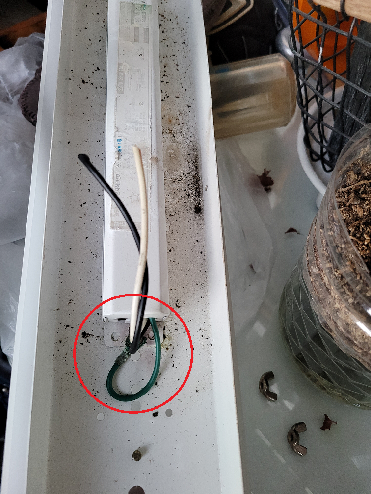 일단 베란다 등을 분리해서 보니 아래와 같이 전선쪽에 거뭇 거뭇한 그을음 같은 것이 약간 묻어나와있었다.